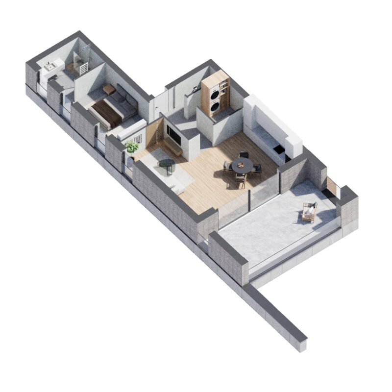 Pour faciliter votre installation, une cuisine équipée de standing ainsi qu’un budget mobilier intégré sont inclus dans le prix.