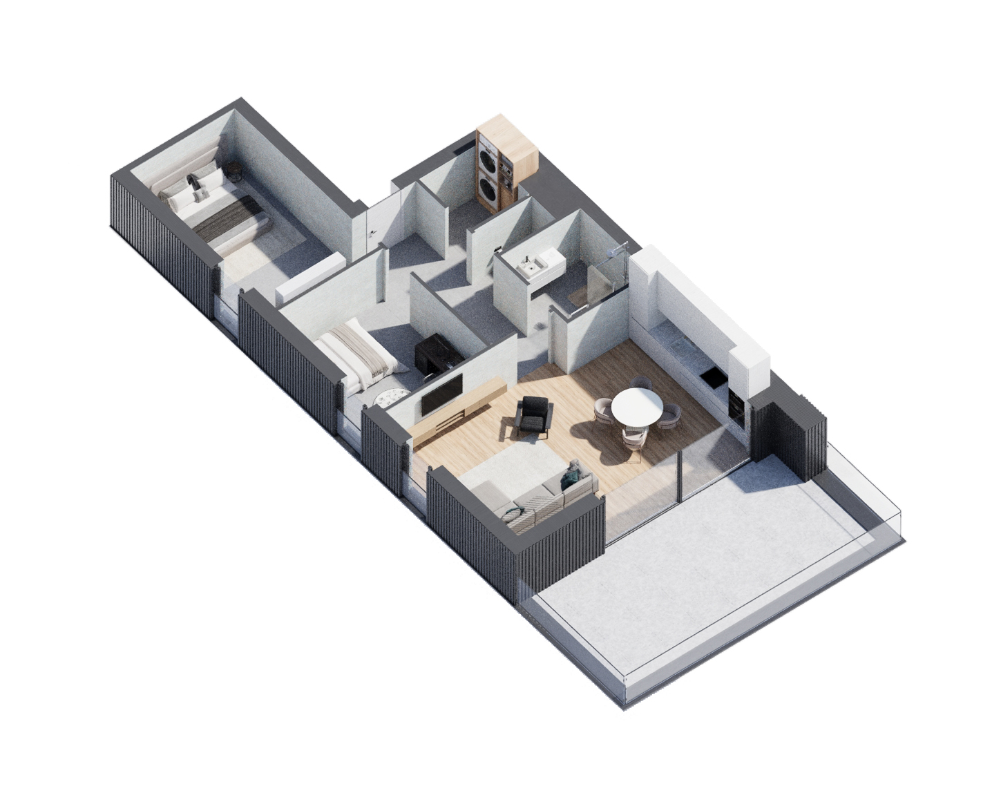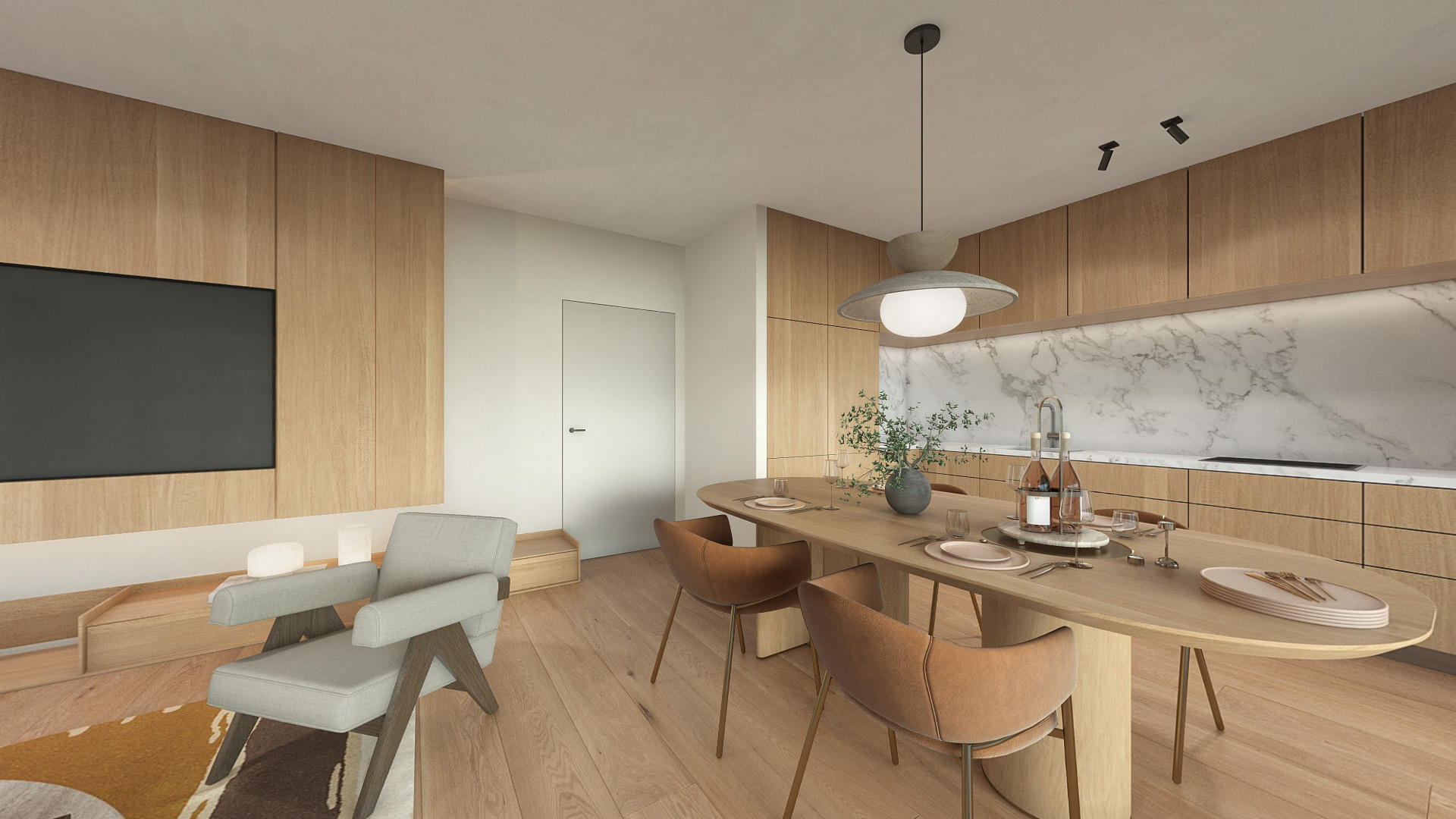 Pour faciliter votre installation, une cuisine équipée de standing ainsi qu’un budget mobilier intégré sont inclus dans le prix.