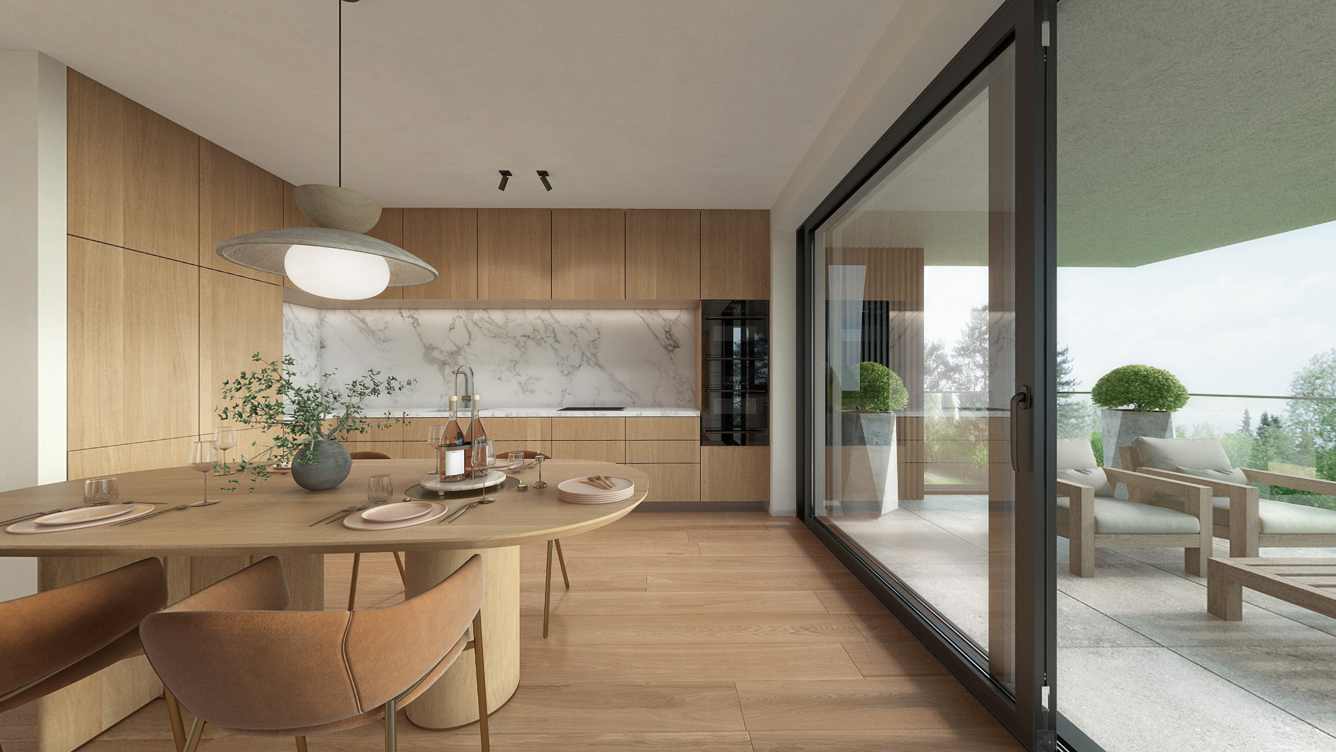 Dès l’entrée, vous serez séduit par la qualité des finitions et l’espace de vie lumineux s’ouvrant sur une vaste terrasse de 26 m². Conçu pour un confort absolu, l’appartement bénéficie d’une isolation acoustique soignée et d’équipements de pointe : pompe à chaleur avec chauffage et climatisation par le sol, ventilation double flux et châssis en aluminium haute performance.