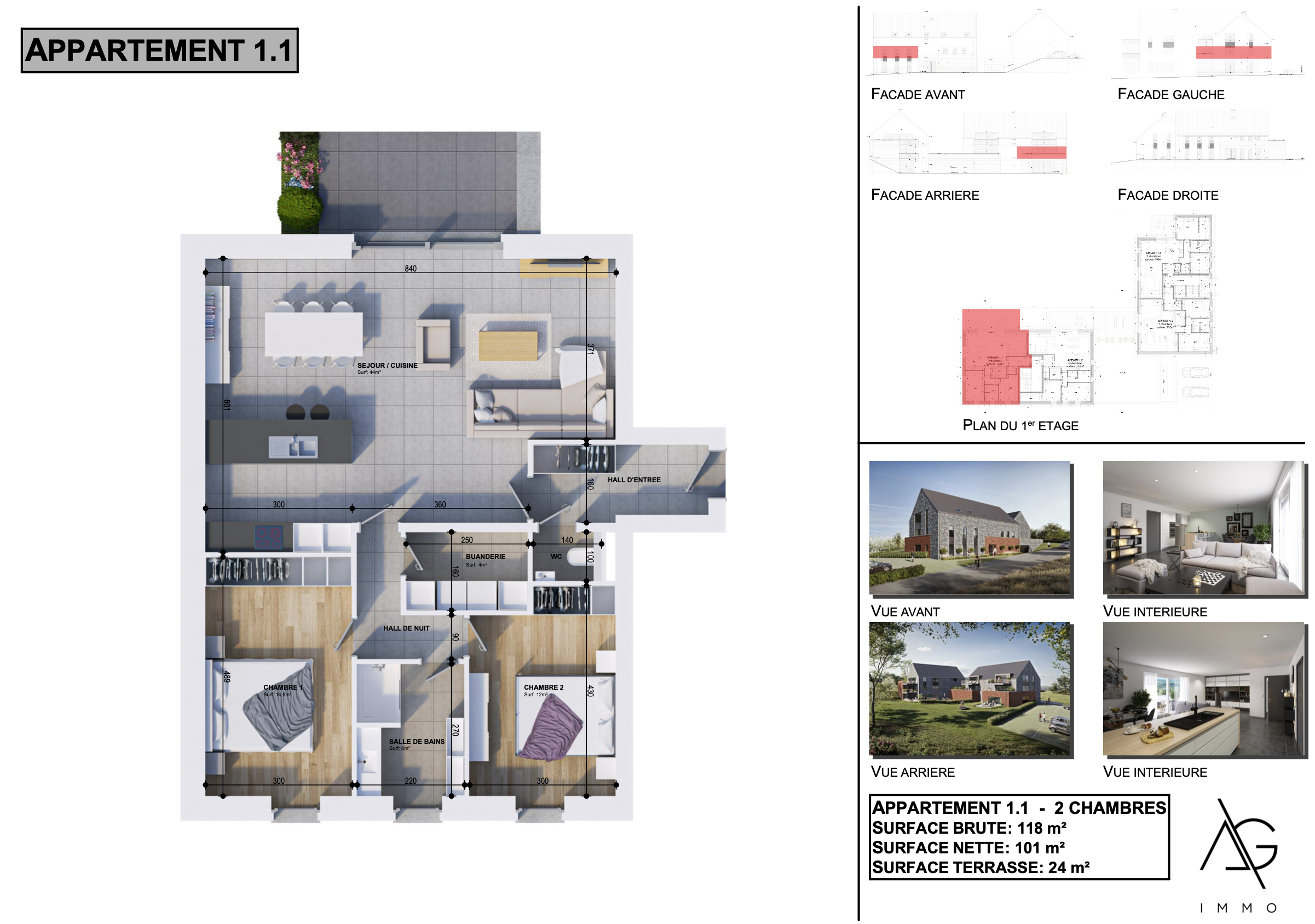 Finitions haut de gamme, ascenseur, isolation thermique et acoustique soignée. Le prix inclut cuisine équipée complète, revêtements de sol (carrelage et/ou parquet). Possibilité d’acquérir une cave et un emplacement de parking privatif intérieur ou extérieur en supplément. Paiement à la livraison (prévue 2026). Vente sous régime TVA 21%.