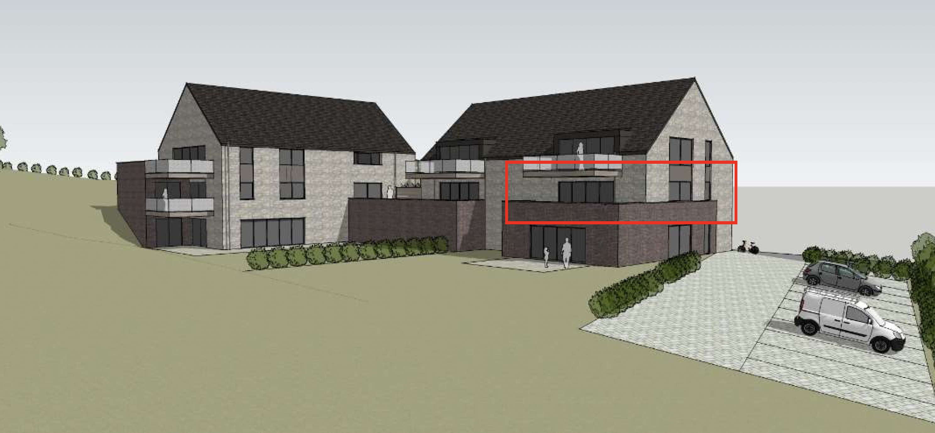 Idéalement situé, dans le village très recherché de Nandrin, superbe appartement de 2 chambres de 118 m² situé au 1er étage de la résidence avec grande terrasse de 24 m².