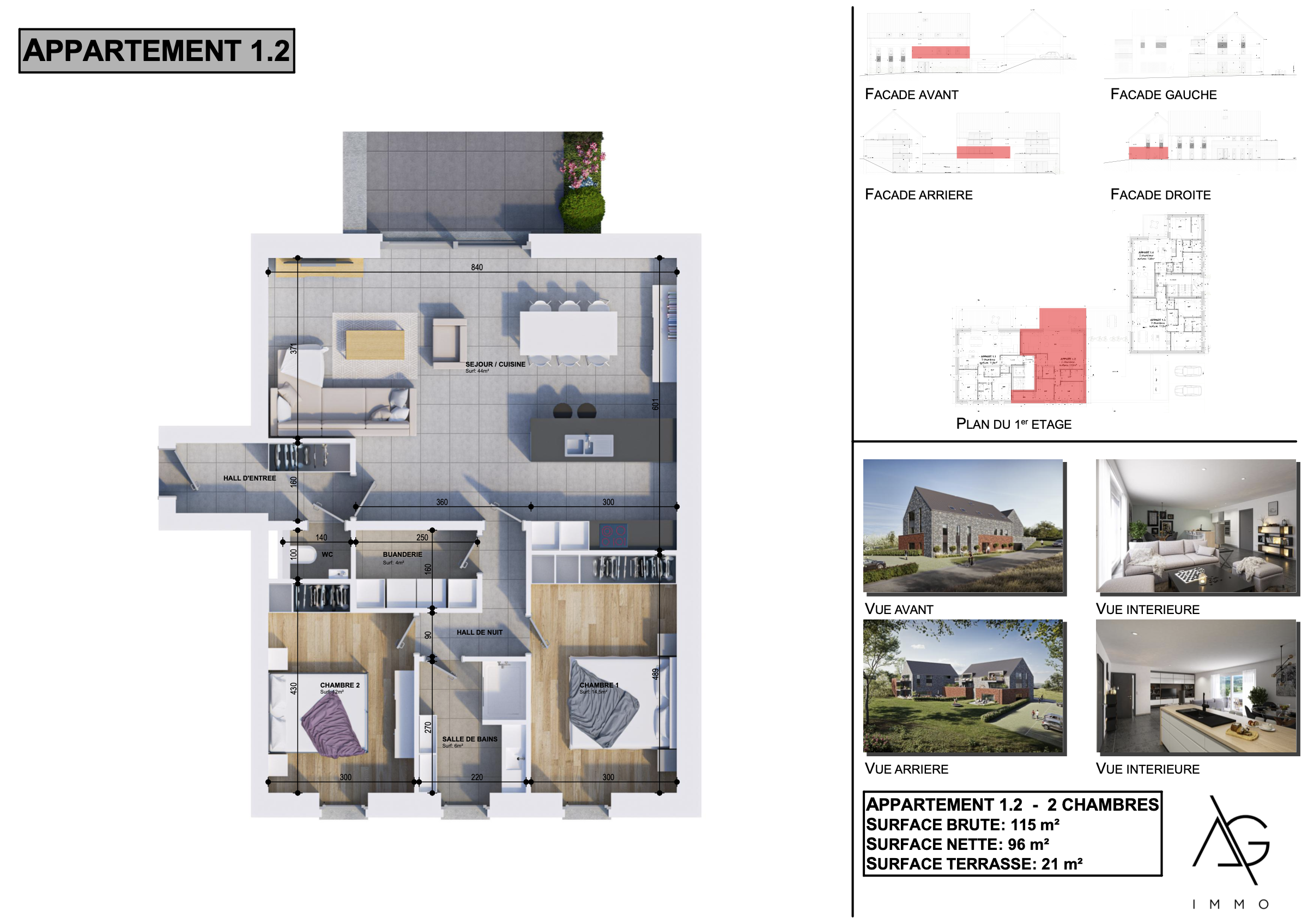 Idéalement situé, dans le village très recherché de Nandrin, superbe appartement de 2 chambres de 115 m² situé au 2ème étage de la résidence avec grande terrasse de 21 m².
