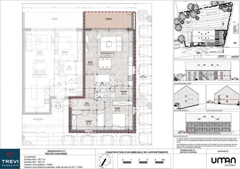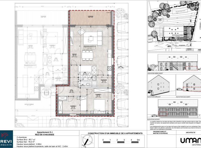 Idéalement situé, dans le charmant village de Marchin, dans une nouvelle résidence de 8 appartements, magnifique appartement de 2 chambres de 90,7 m² avec grande terrasse privative de 12 m².
