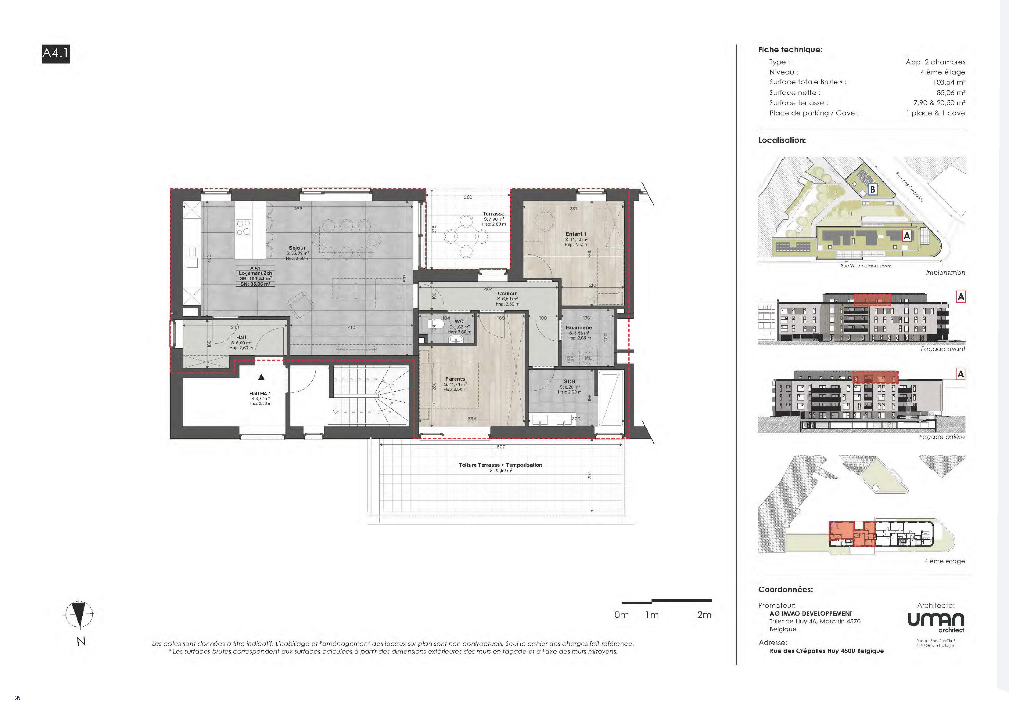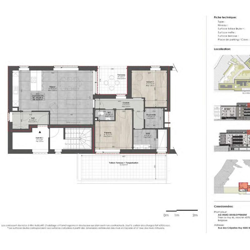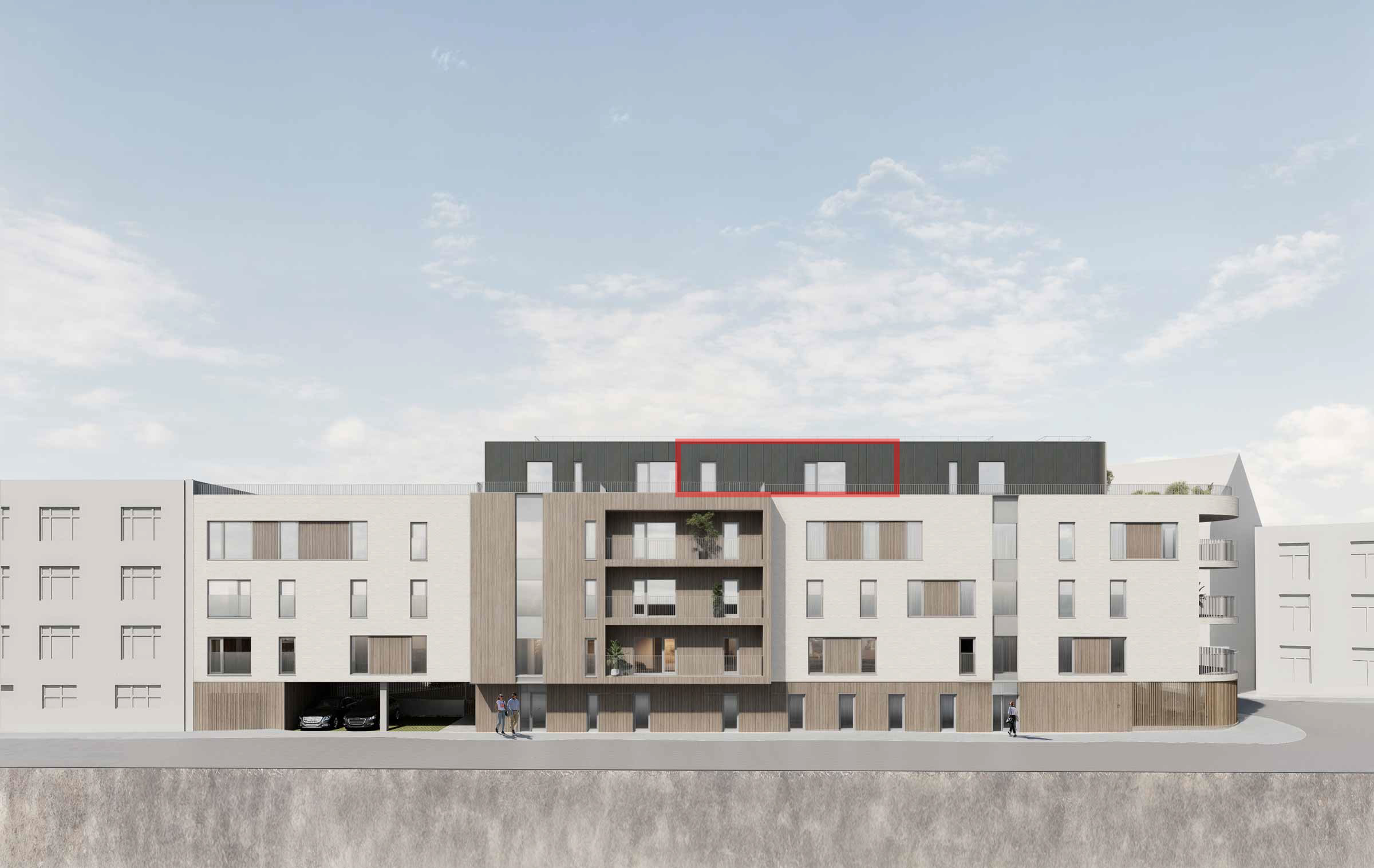 En plein centre-ville de Huy, dans une résidence neuve de 23 appartements, l’appartement A4.1 offre 2 chambres, 103,54 m² et une terrasse privative de 20,45 m². Un appartement rare : grand extérieur, beaux volumes et prestations premium, dans un immeuble neuf à très haute performance énergétique.